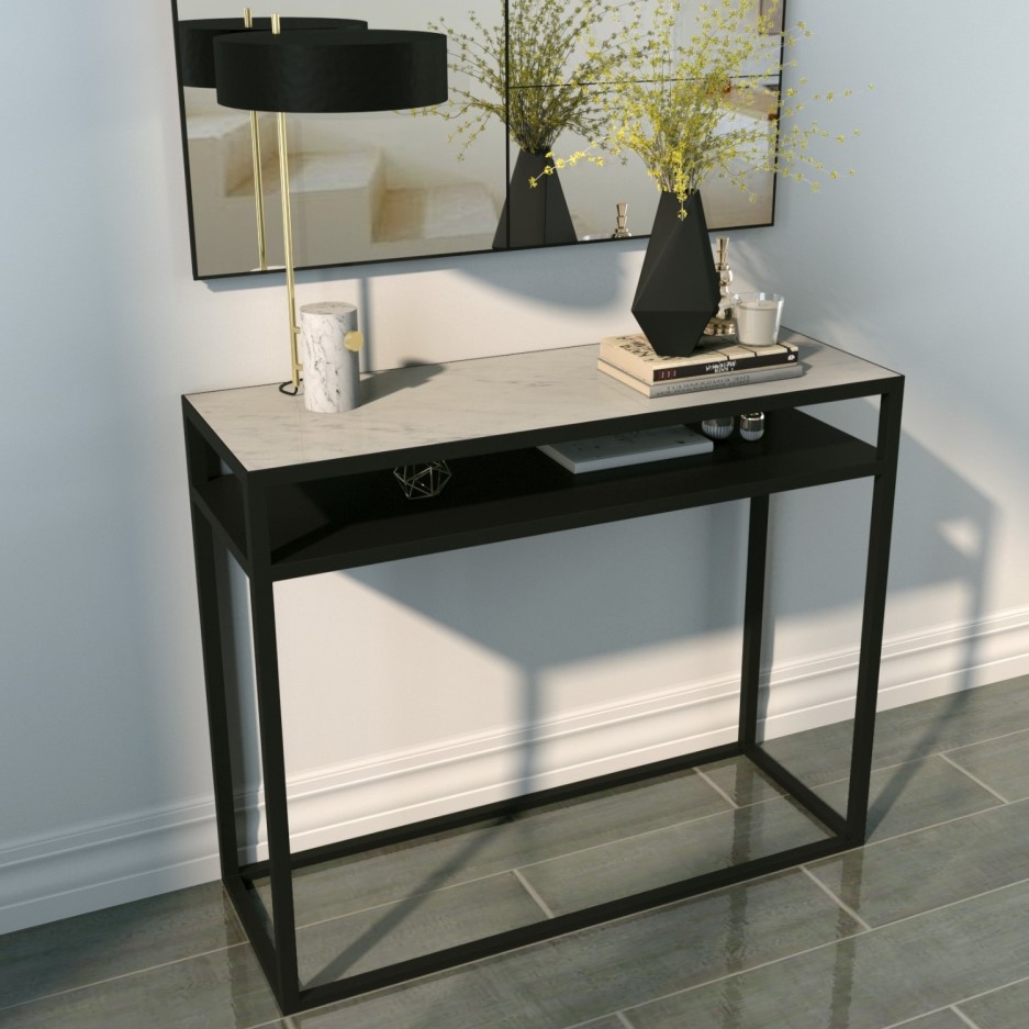 35+ Black Console Table With White Marble Top Pictures. 48 l console table solid black marble slab distressed metal scrolled iron. Modern console tables create storage and decor space with minimal floor footprint.