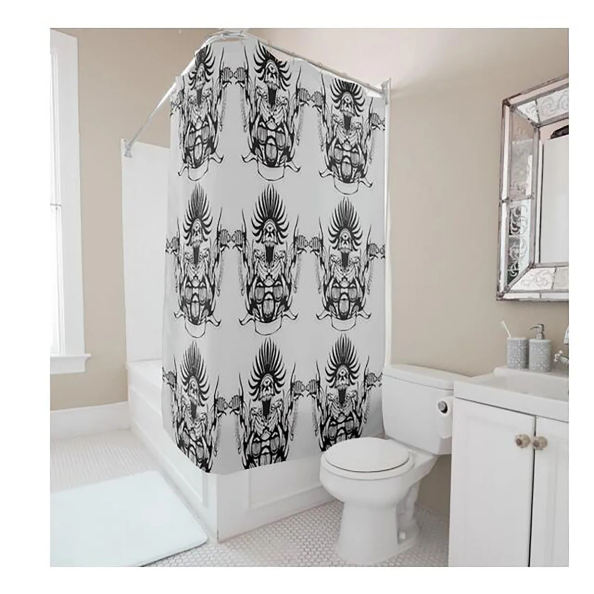 Creative Personalized Nine Skull Printing Shower Curtain ... from ae01.alicdn.com We absolutely adore this idea for creating a safe pool on the beach so that little kids can enjoy swimming closer to your camp rather than out in. Farmhouse, boho, bohemian, rustic, elegant, vintage, master, apartment, pretty, girls, kids, cute. Features double shower curtain ring create a bright, highly reflective, cool gray metallic look offset hook design helps hide liner from view separates decorative double shower curtain ideas for a small bathroom.
