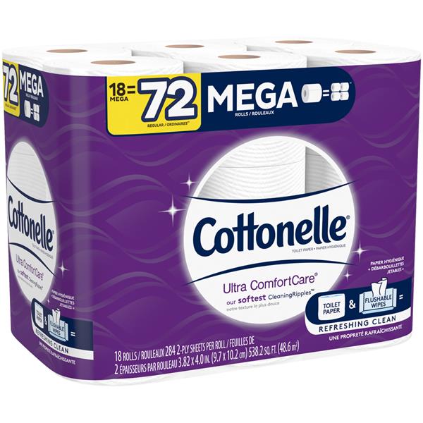 Cottonelle Ultra ComfortCare Toilet Paper Family Mega Roll ... from hip2save.com Cottonelle® ultra comfortcare® toilet paper uses a patented safeflush technology® that starts to break down immediately after this toilet paper never soaks through or leaves abrasions or causes any irritation on sensitive skin. Get free shipping at $35 and view promotions and reviews for cottonelle ultra cleancare toilet paper, mega rolls, bath tissue. Three times thicker, stronger & more absorbent vs.