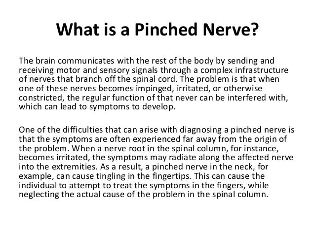 View Pinched Nerve In Brain Symptoms US. You may work with a physical therapist to target the symptoms caused by your pinched nerve. Pinched nerve — comprehensive overview covers symptoms, causes, treatments of a featured conditions.